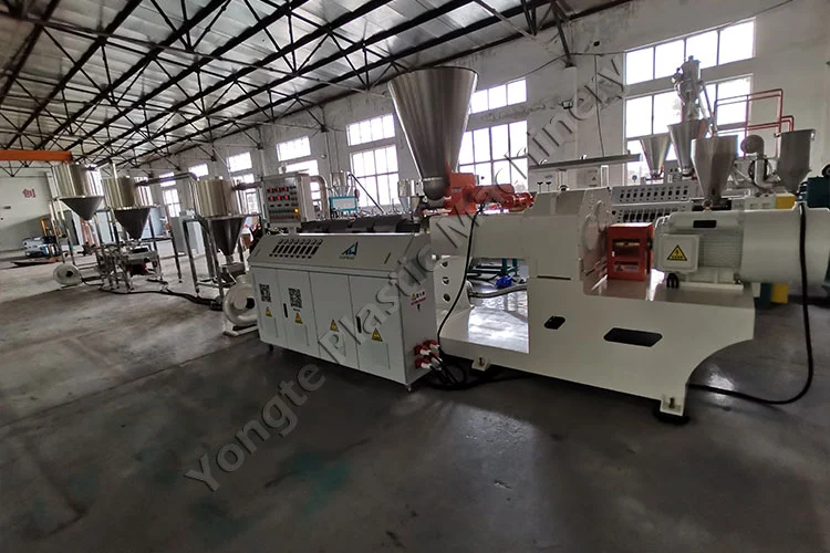 Anno 2024, consuetudinem PVC compositi machinam pelletandi machinam pro cliente Polonica machinati sumus, specialiter destinati ad granula PVC masterbatch producendi ex recyclo PVC et CaCO₃ filler. Contentum filler CaCO₃ molliter accommodari potest inter 40% et 80% ad align cum specificationibus productionis emptoris. Partes keys includunt automatarium nutritorem, SJSZ80/156 extrudum cochleae geminae conicae (75kW motoris cum ABB frequentia invertente, in operatione stabili consumentis ~50KW), calido pelletizing mori pro granulo aequabili inciso, et 304 ferrum incorruptum tres scaenae celeri aeris refrigerandi et portandi ratio. Machina productionem capacitatem 300-400 kg/horam attingit et ad 24/7 continuam operationem cum nulla downtime aedificatur. Installatio inconsutilis erat, peritia Yongte in quadrigis, qui finem ad finem auxilium praebebat. Post-installation, in-situ disciplinae huius baculi facultatem tribuit ut apparatum proficiant operandi, dum remotis technicis subsidiis via video ductu, promptum solutionem cuiuslibet exituum procuravit, continua productione et culmine effectus servans.